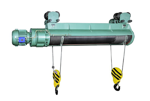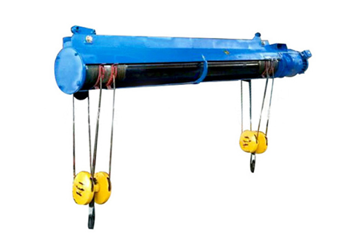 市場上雙鉤雙吊點電動葫蘆所謂雙吊點鋼絲繩電動葫蘆是指有兩個間隔一定距離的吊點,并能同時上升或同時下降的電動葫蘆。現有的雙吊點鋼絲繩電動葫蘆有,在- - 臺鋼絲繩電動葫蘆卷筒兩端各有-套吊鉤滑輪裝置,這種雙吊點電動葫蘆因兩套吊鉤滑輪裝置均由--個卷筒起升或下降,可以保證兩吊點同時升降;
